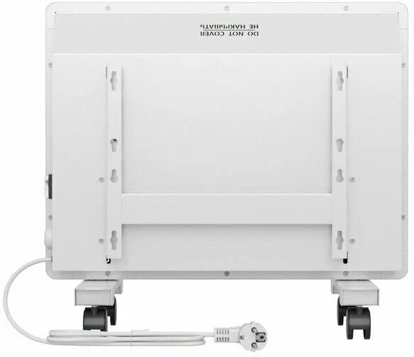 - Два варианта монтажа — конвектор можно расположить на полу или повесить на стену (колесные опоры и кронштейн входят в комплект поставки).